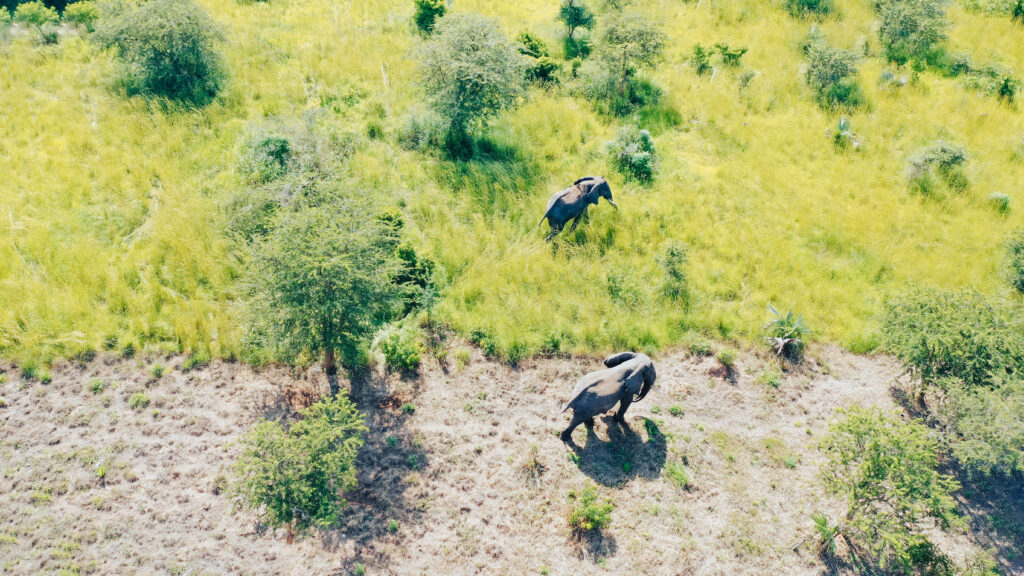 Elephants spotted in a cultivated space near Murchison Aswa Falls Conservancy.